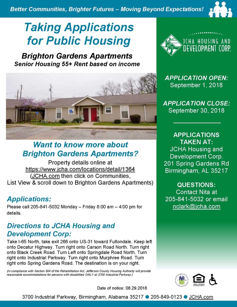 Taking Applications For Public Housing Brighton Gardens Apartments 09 07 2018 News Jefferson County Housing Authority Jefferson County Al